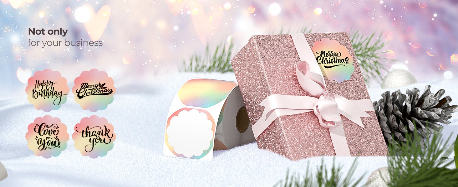 Logo stickers, thank-you labels, QR codes, product info labels.