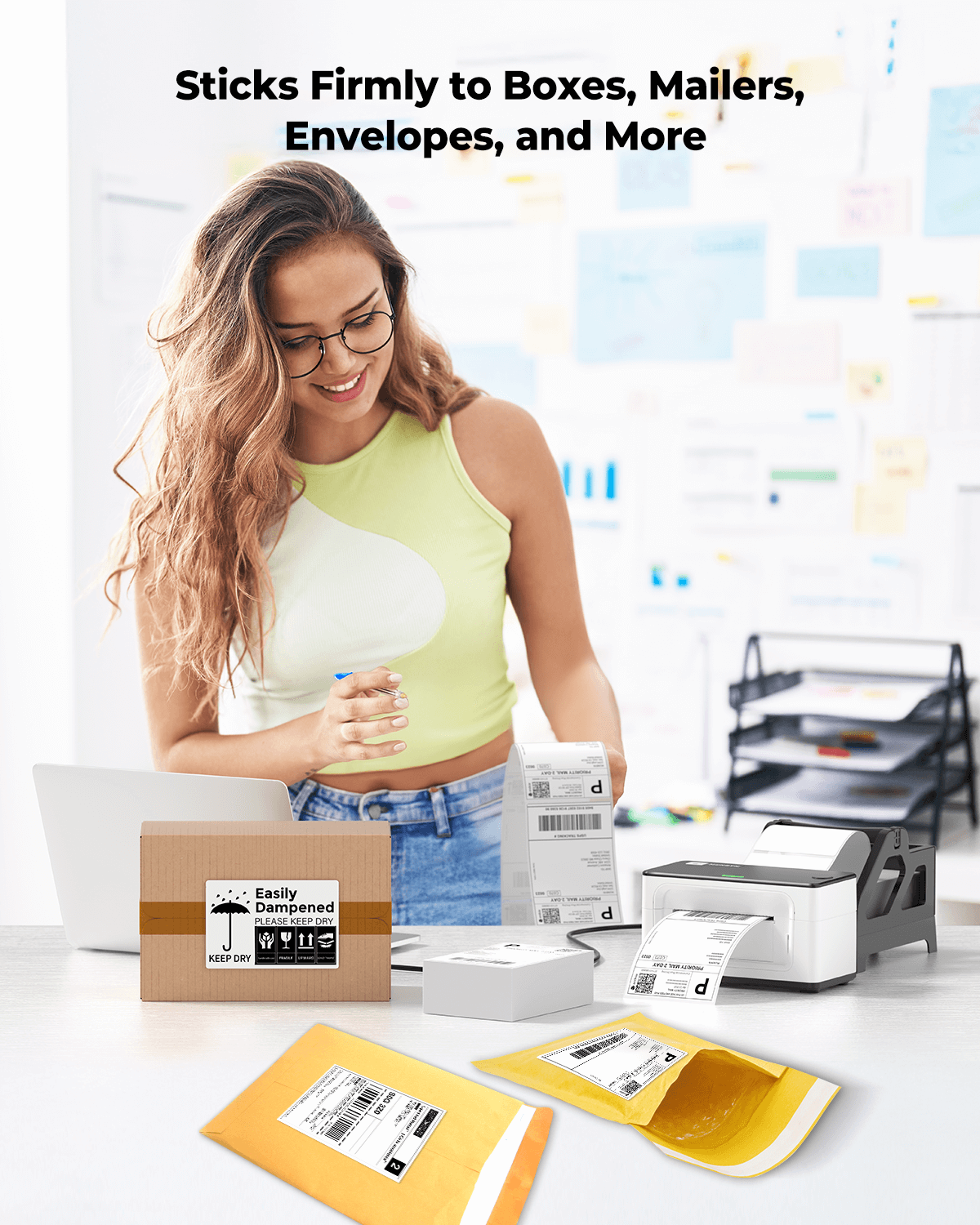 Reliable Upgrade Materials: The thermal labels are upgraded materials that print crystal-clear images and easy-to-read barcodes. They are brighter than the leading brand and have significant resistance to smudges and scratches.