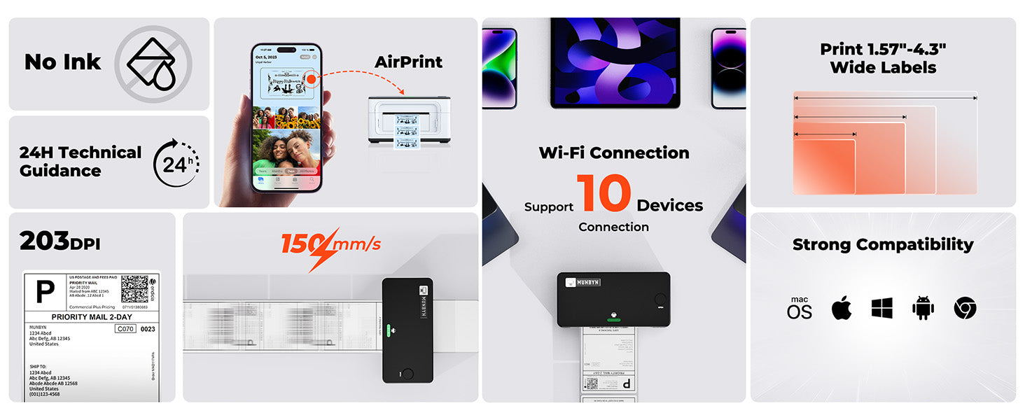 Your MUNBYN printer automatically recognizes and adjusts to different label sizes—no manual setup needed.