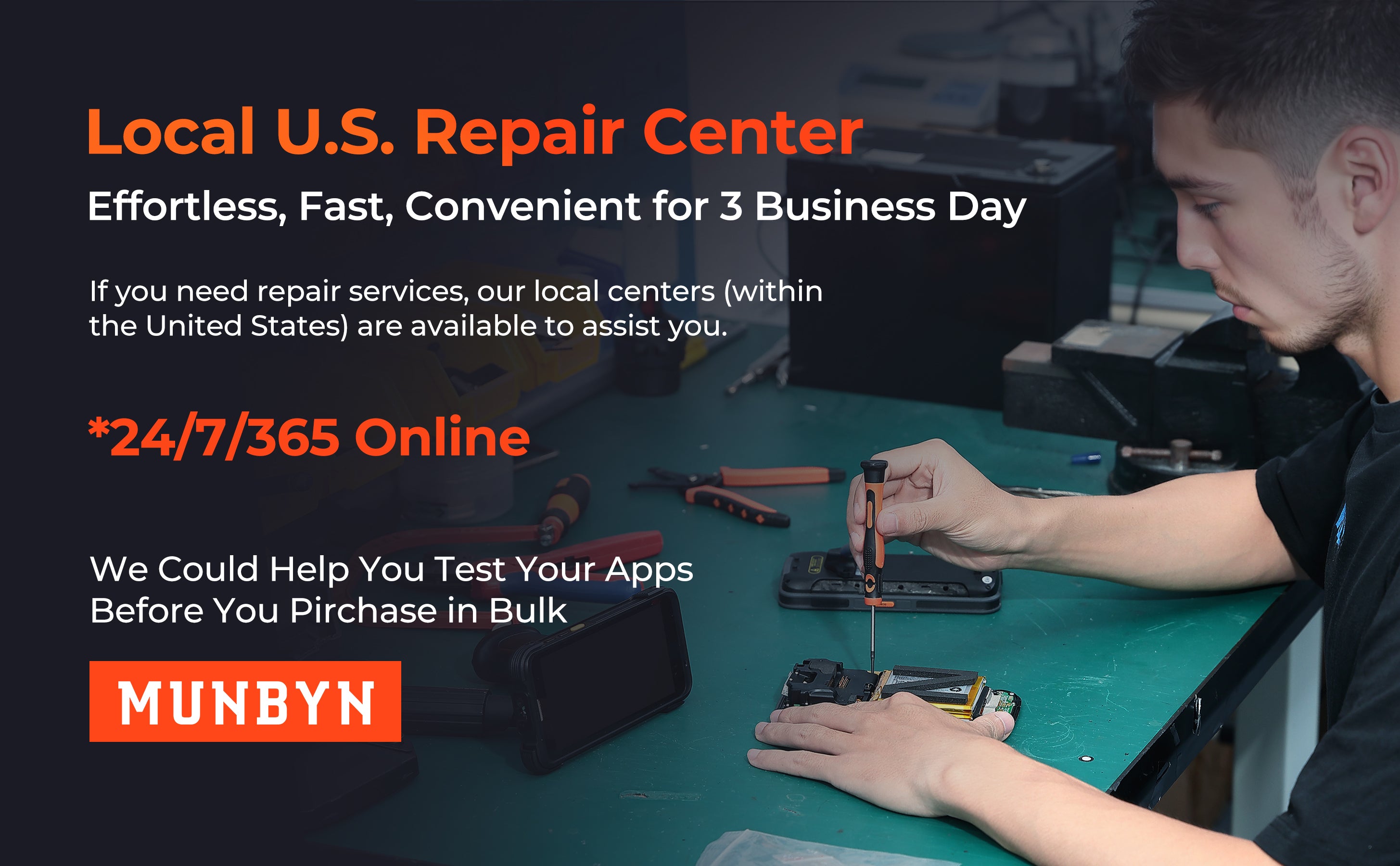 - If you need repair, our local centers(within the United States)are waiting for you. Once you select the MUNBYN device, you get comprehensive coverage — if it’s broken, we fix it. With a live 24/7 technical agent, help is available when you need it. There’s no waiting for scanners to be returned — a ‘like new’ ready-to-use replacement scanner arrives the next day, complete with your apps, OS version, network configuration, and more.