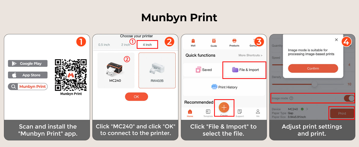 • Simplify Your Printing Tasks – Design labels with the free “MUNBYN Print” app (iOS/Android) or “MUNBYN Editor” (Chrome). Access 3,500+ design elements, 2,000+ templates, 80+ fonts