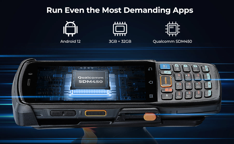 Boasting 3GB of RAM and 32GB of ROM, the MUNBYN handheld barcode scanner 082Pro provides ample space for storing applications, data, and scanned information. Powered by the octa-core Qualcomm SDM450 CPU, this pda device ensures smooth and efficient operation, allowing you to handle multiple tasks simultaneously without lag.