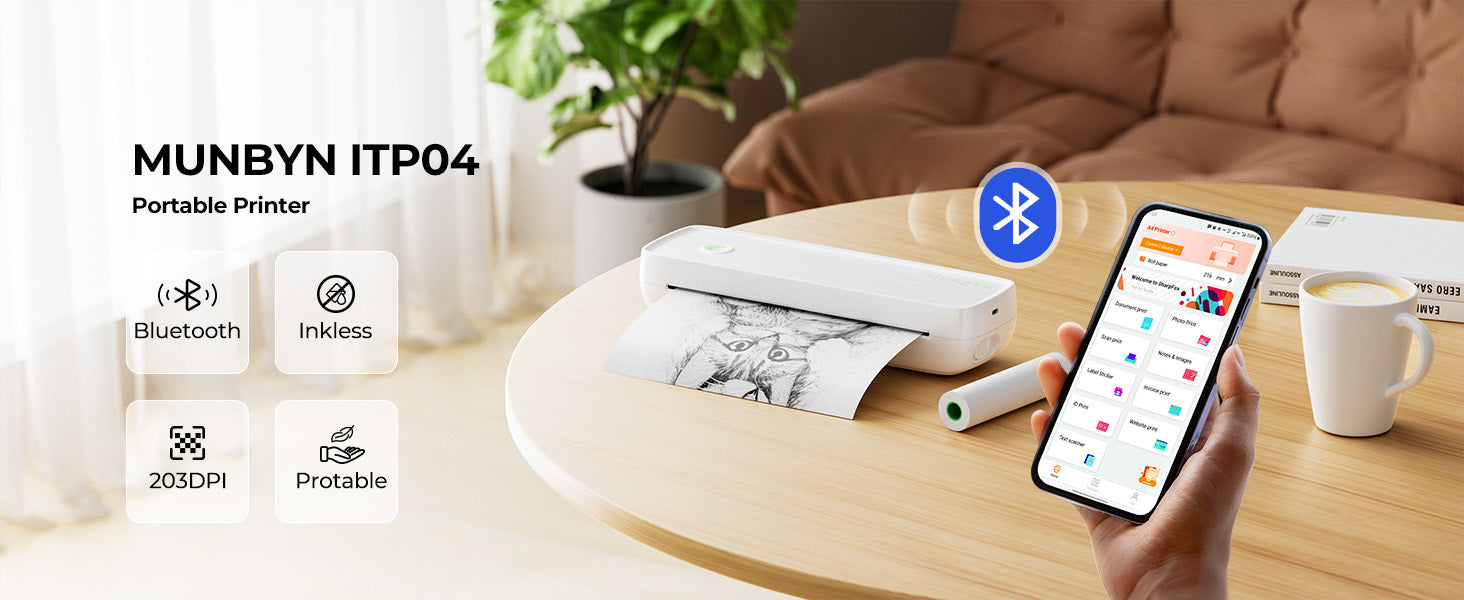 Munbyn Anywhere Office Kit ITP04 A4 Document Printer + MC240 Bluetooth Label Printer