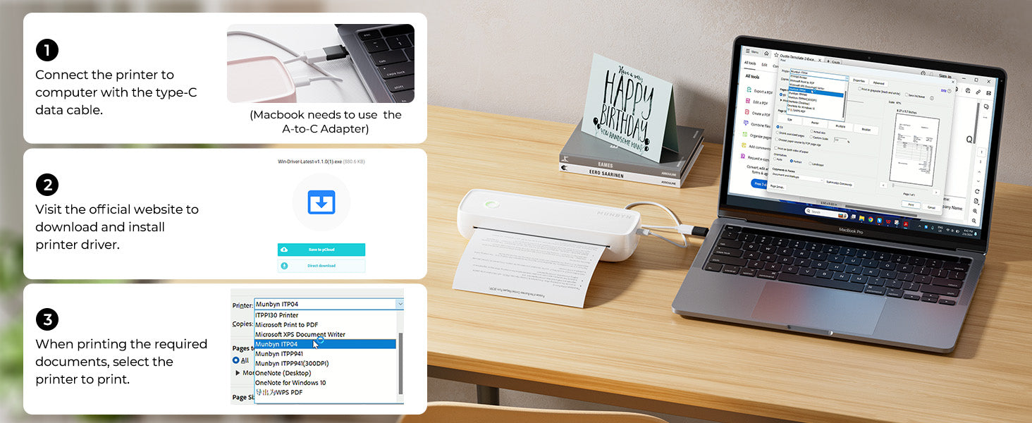 MUNBYN label printers work with Windows, Mac, Chromebook, iOS, Android, and most tablets.