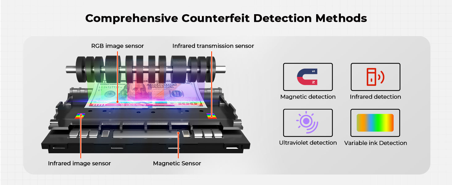 Yes. Most models support multi-layer counterfeit detection such as UV, IR, MG, DD, DBL, HLF, CHN, depending on the model.
