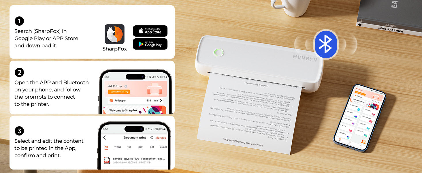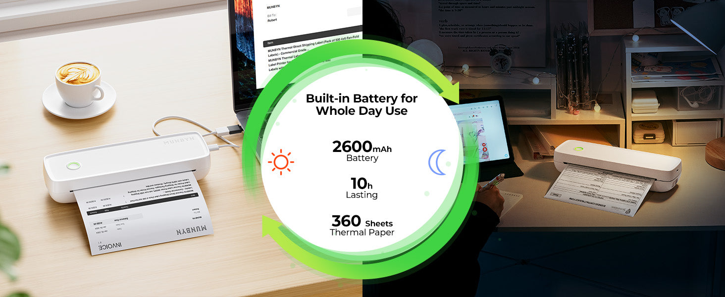 Portable and Compact: Weighing only 750 grams, which is equivalent to a bottle of water, it is a portable wireless printer suitable for travel. With Bluetooth connectivity, you can print anywhere and anytime. The built-in 2600mAh battery ensures uninterrupted use throughout the day.