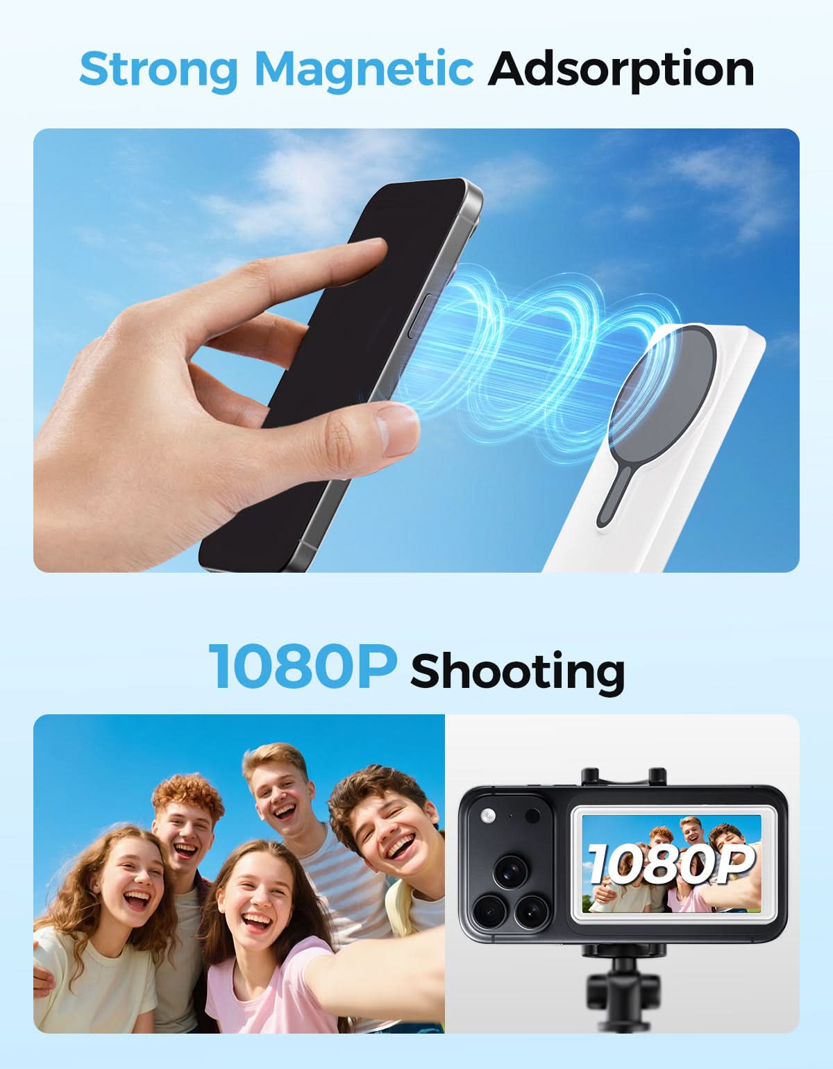 - 【1080P+Strong Magnetic Attraction】Featuring 1080P video and a strong magnetic design, it connects directly to iPhone 15/16 series (compatible with Samsung, Android, and other OTG-enabled devices) for plug-and-play operation, requiring no setup. A universal magnetic clip is included for flexible adaptation to other phone models. No separate power supply is required; simply connect directly to your phone, making it ideal for travel bloggers, outdoor livestreaming, working from home, or conferencing