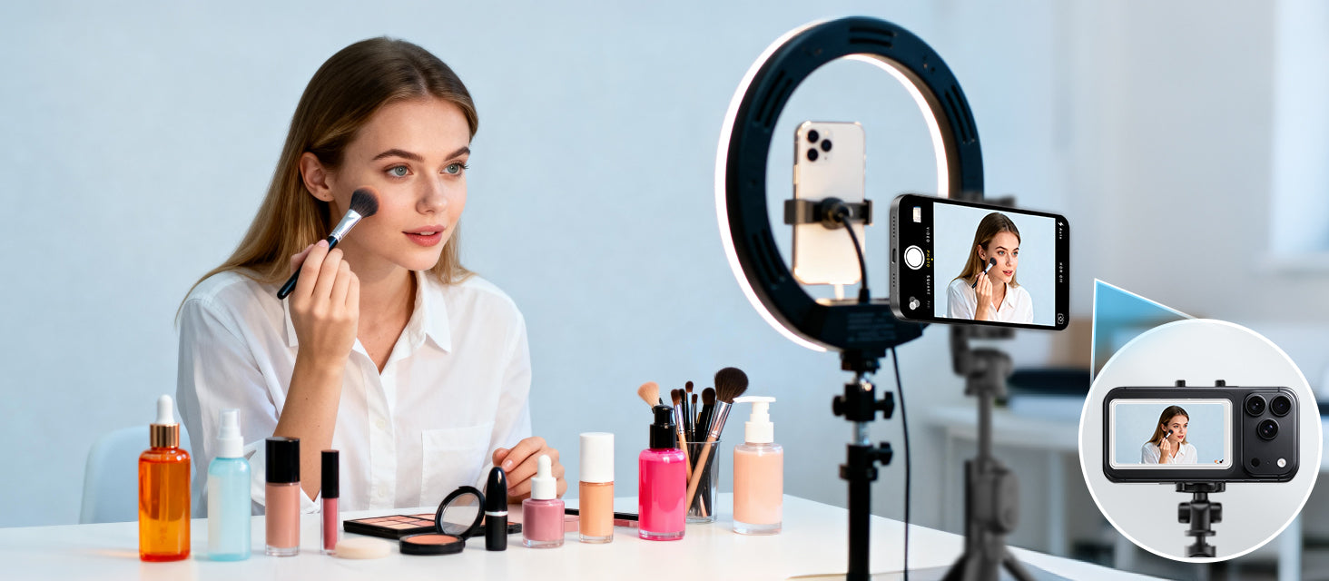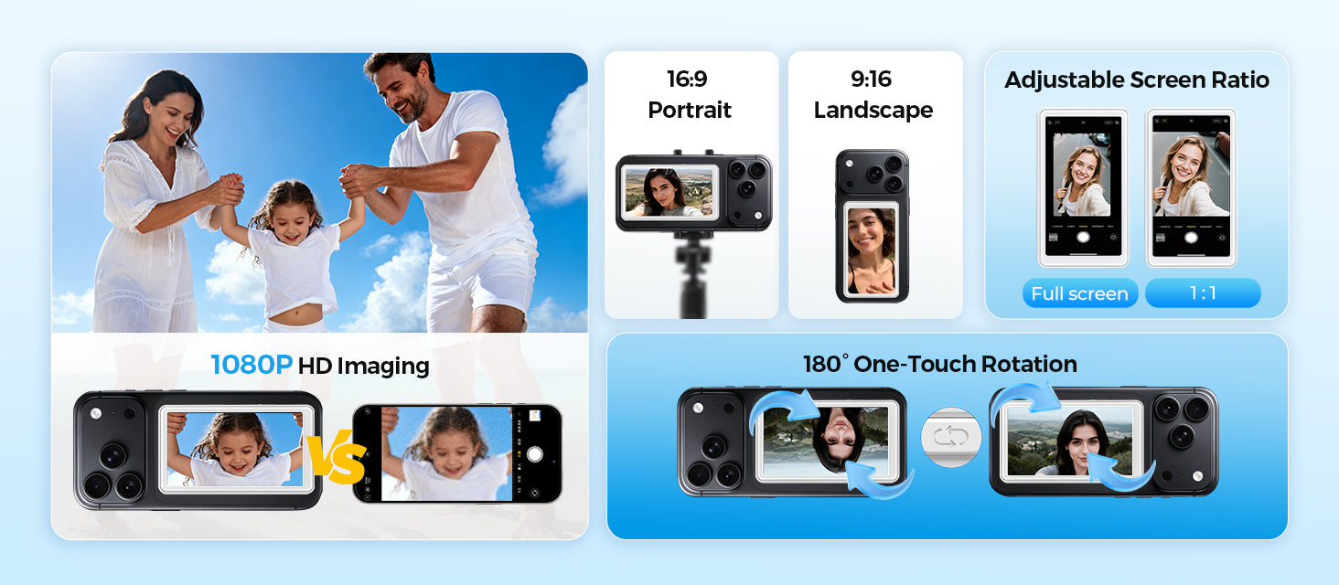 - 【One-Touch 180° Rotation + Aspect Ratio Adjustment】A single-touch rotation button instantly flips the image to avoid awkward upside-down viewing. It also supports one-touch adjustment of the aspect ratio (e.g., 9:16 portrait or 16:9 landscape), quickly adapting to different formats for platforms like TikTok and YouTube. It's perfect for multi-platform content creators, livestreamers, and short video makers
