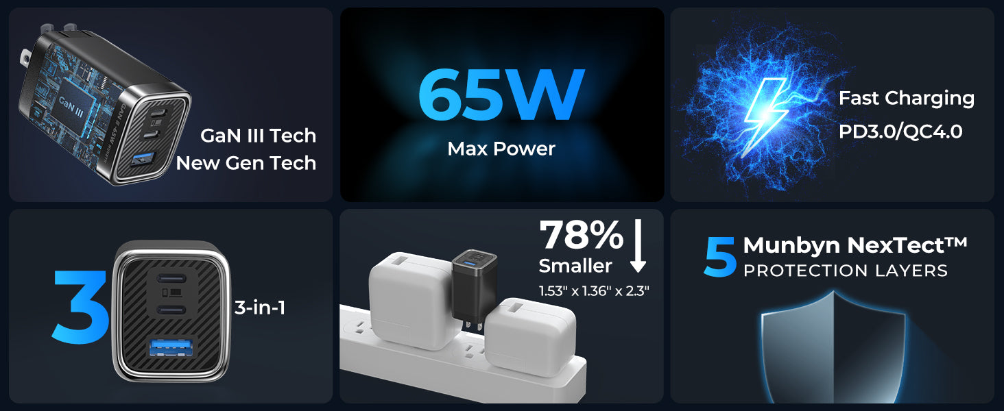 Compared to traditional 65W chargers, it is 78% smaller and weighs about 118g.