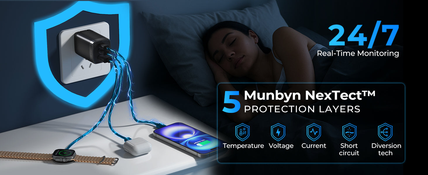 Built-in 5 Safety Protections:Smart temp control, Volt - Protect, Curr - Protect, Short - Protect, Smart Diversion Tech