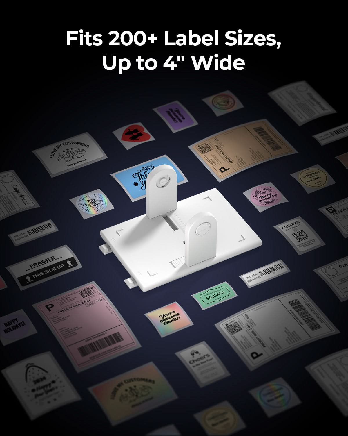 -Auto-Calibration & Universal Compatibility: Integrated label holder + auto-calibration ensures perfect alignment and flawless clarity. Versatile sizing: Fits labels from 1.57" to 4.3" wide, including popular sizes (4x6", 2x2", 3x2", 2.25x1.25", 2x1"). Ideal for shipping labels, inventory tags, and more