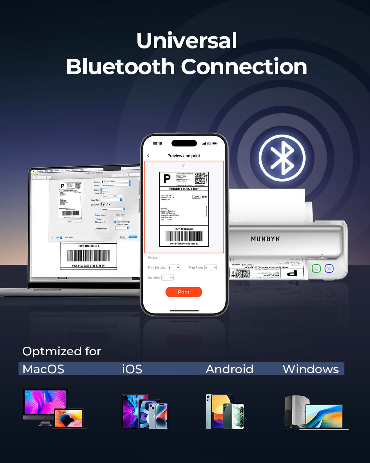 -Exclusive Dual-Color Label Power: Elevate your branding with MUNBYN Black/Red or Black/Blue dual-color labels (sold separately). Create striking two-tone designs effortlessly using our free apps – make your labels stand out!
