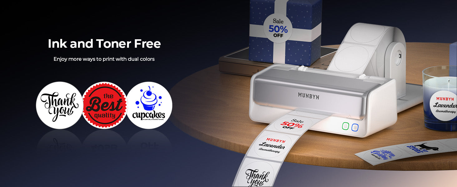 No ink or toner is needed. All MUNBYN printers use direct thermal printing technology—just load the thermal labels and start printing.