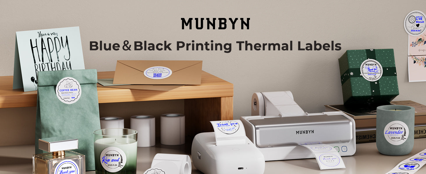 No ink or toner is needed. All MUNBYN printers use direct thermal printing technology—just load the thermal labels and start printing.