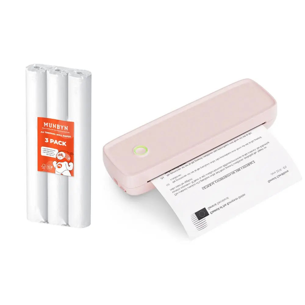 The MUNBYN ITP04 inkless portable printer is your perfect companion for mobile printing. This lightweight (1.65lbs) and compact (11x3x2 inches) printer lets you take productivity with you, printing documents, photos, and web pages wherever you are – at the office, on a trip, or even in your car.