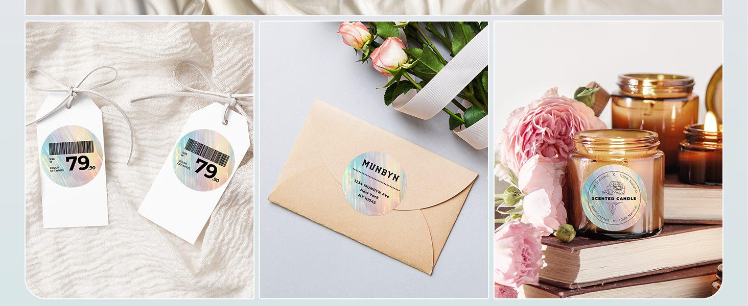 • Work with Printer: Thermal label stickers are compatible with Munbyn, Polono, Jadens, Nelko and other direct thermal printers. Easily link printing with the printer to give your product an elegant appearance.