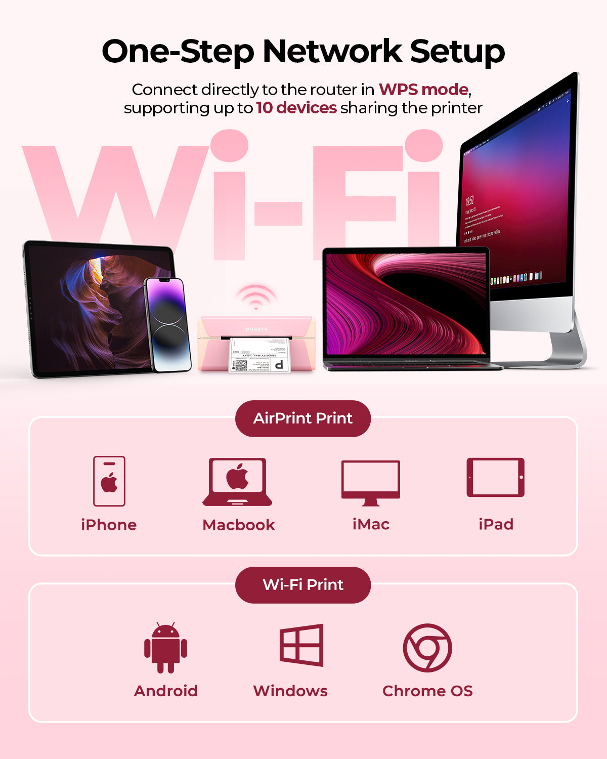 - NO Driver Needed with AirPrint: Compatible with iOS and macOS. It's easy to print documents and photos directly from your Apple devices by connecting to the same Wi-Fi network. This wireless printer supports printing from up to 5 devices simultaneously.